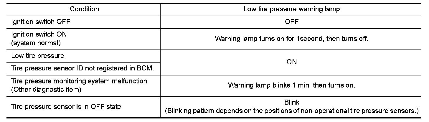 LOW TIRE PRESSURE WARNING LAMP INDICATION CONDITION