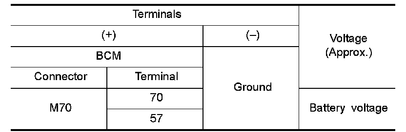 3.Check voltage between BCM harness connector and ground.