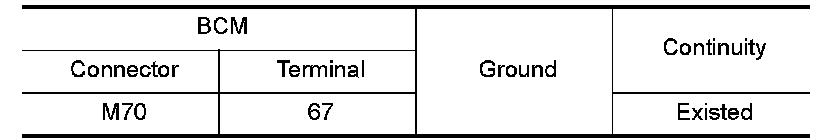 Check continuity between BCM harness connector and ground.