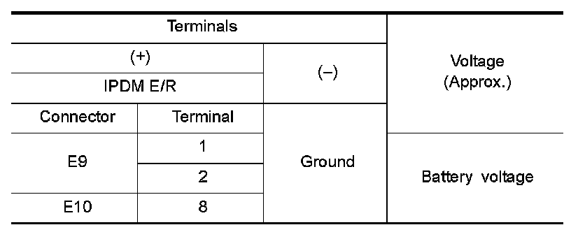 3.Check voltage between IPDM E/R harness connector and the ground.