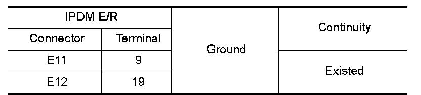Check continuity between IPDM E/R harness connectors and the ground.