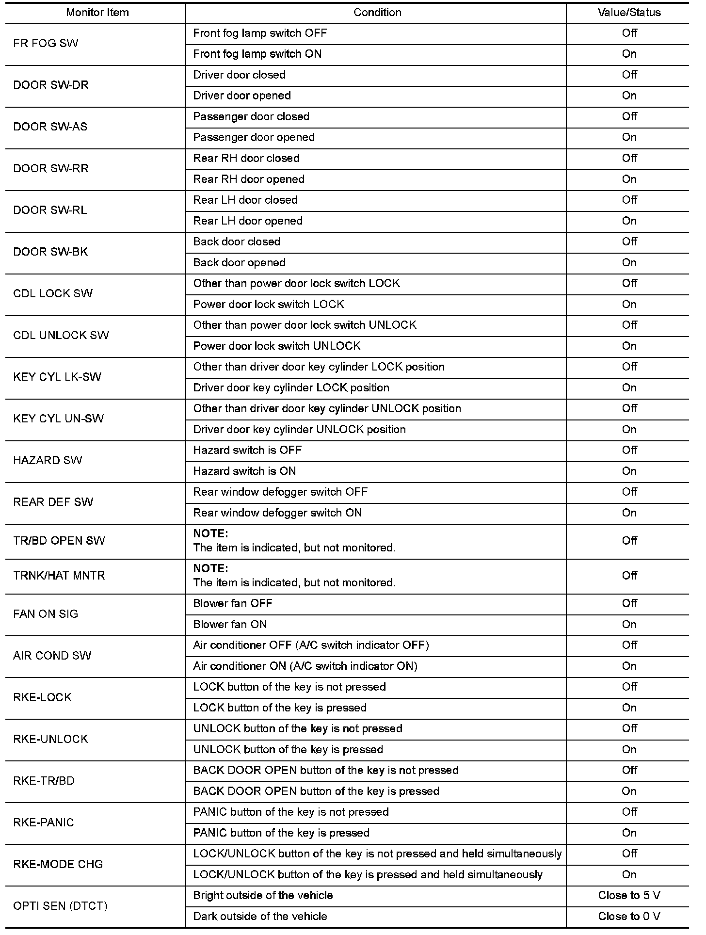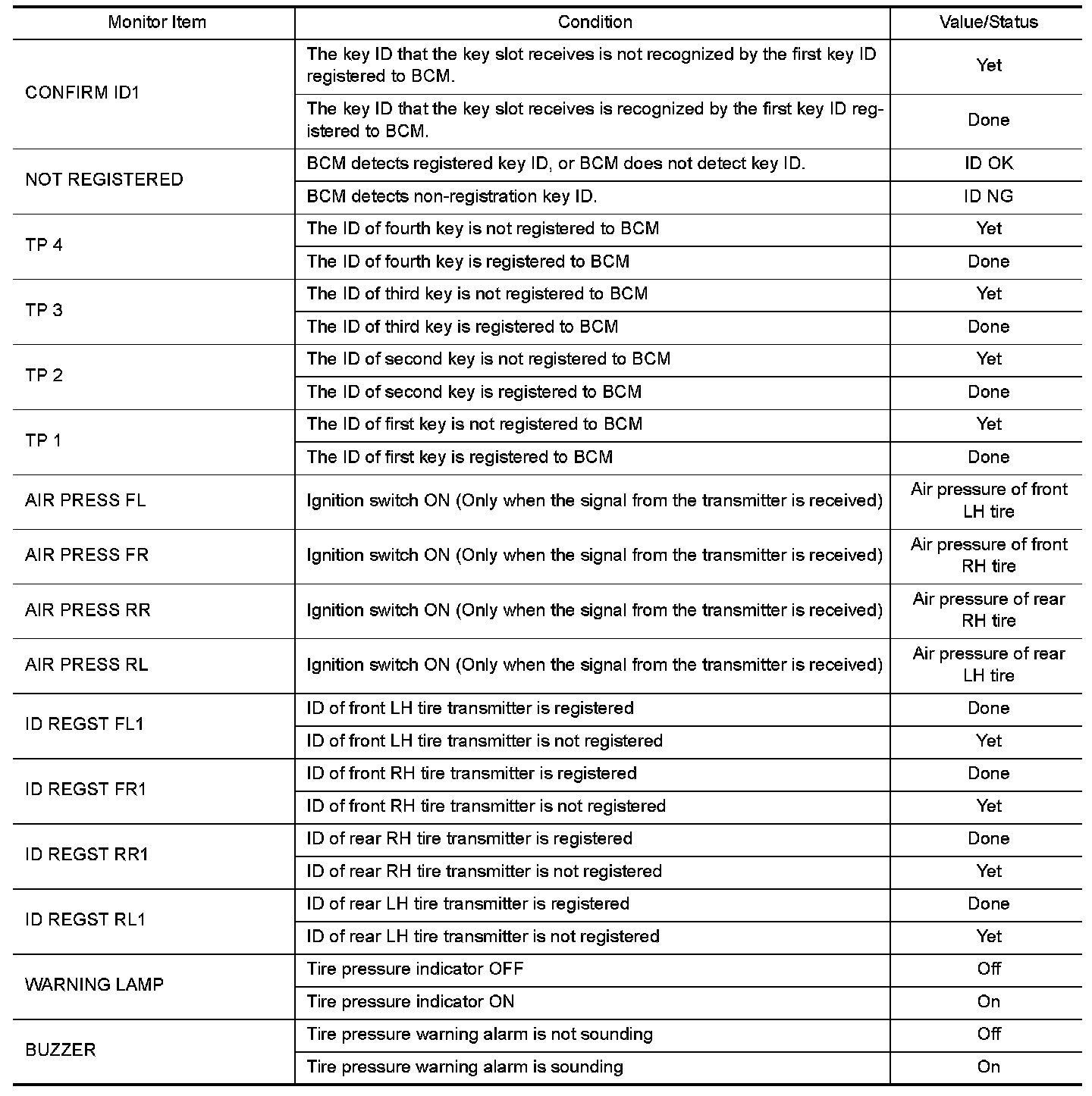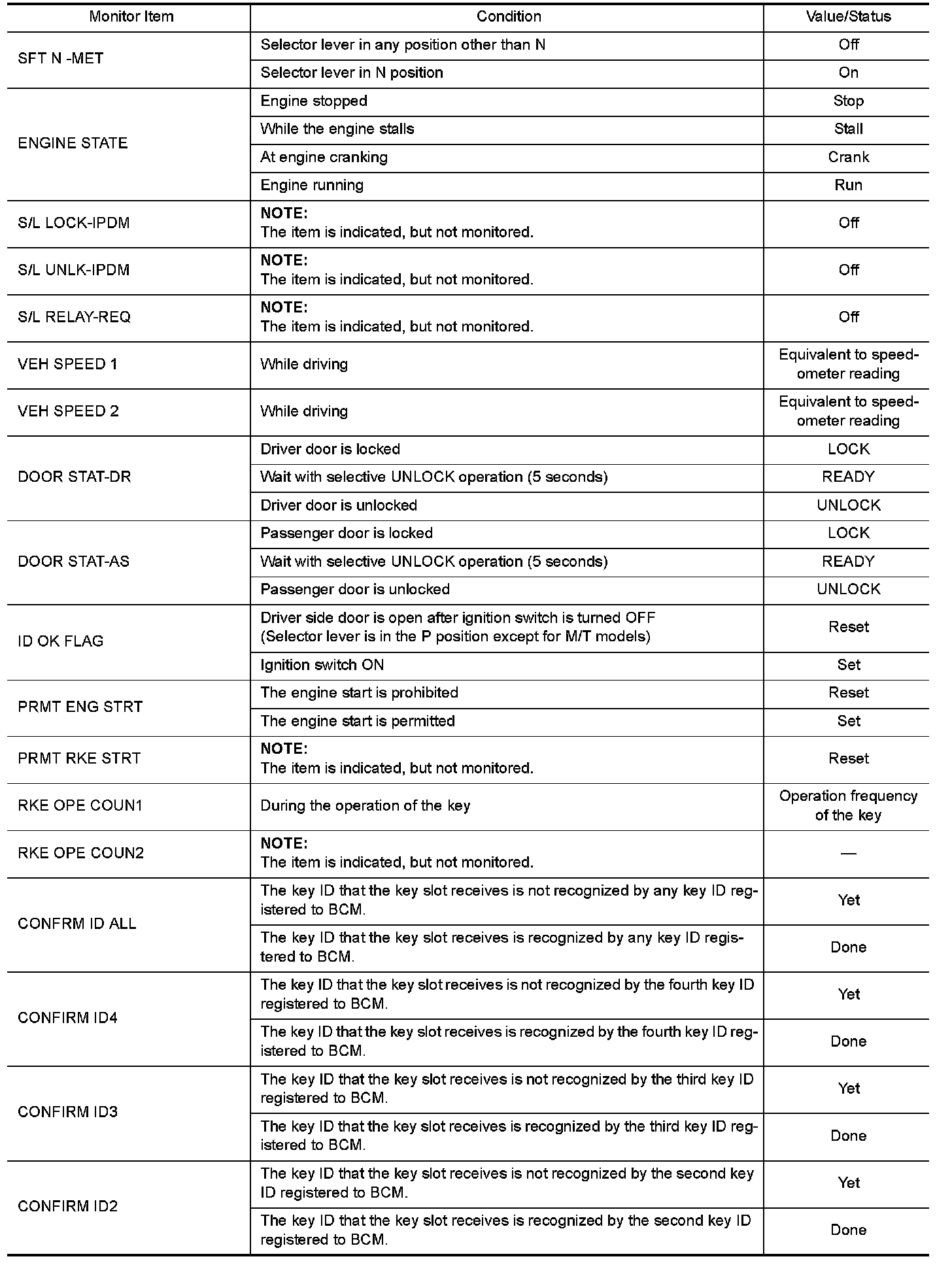 WITH INTELLIGENT KEY : Reference Value