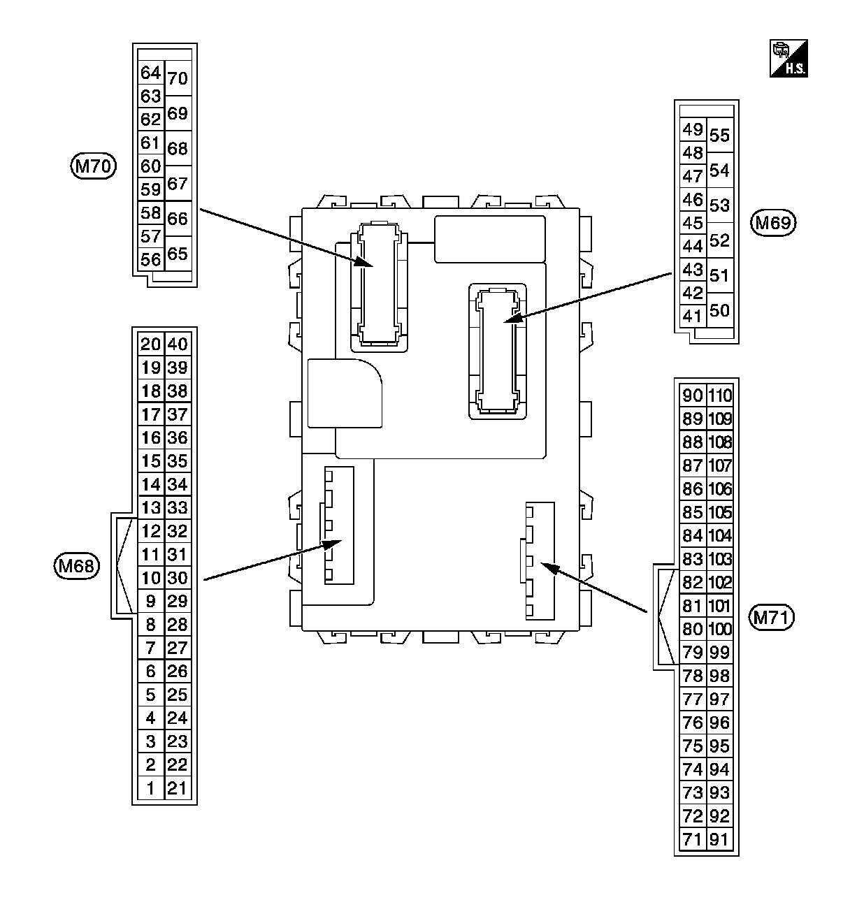 - M68, M70: Black