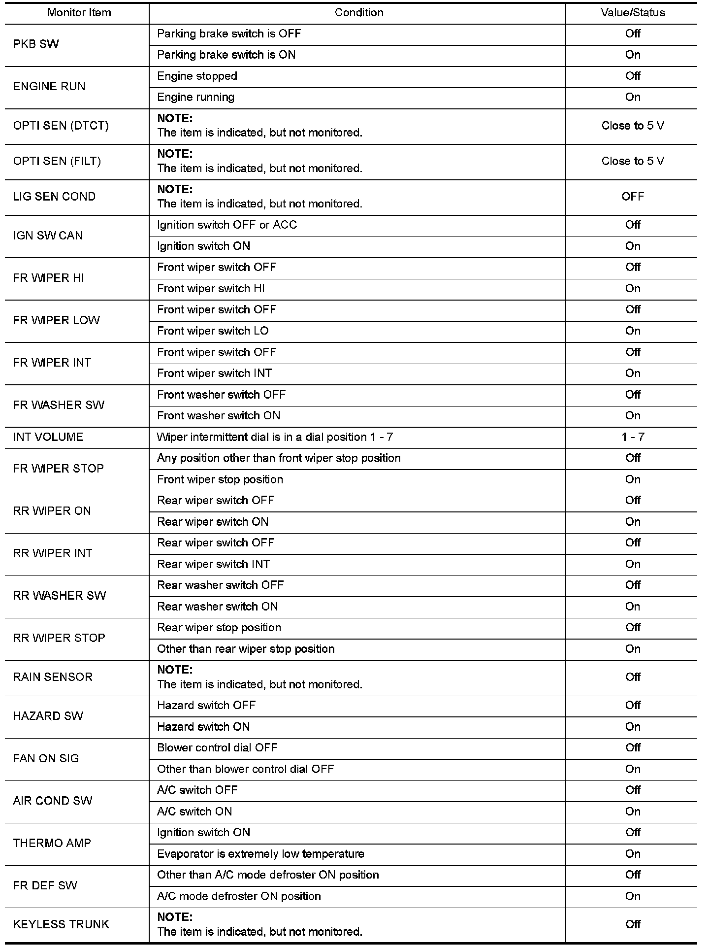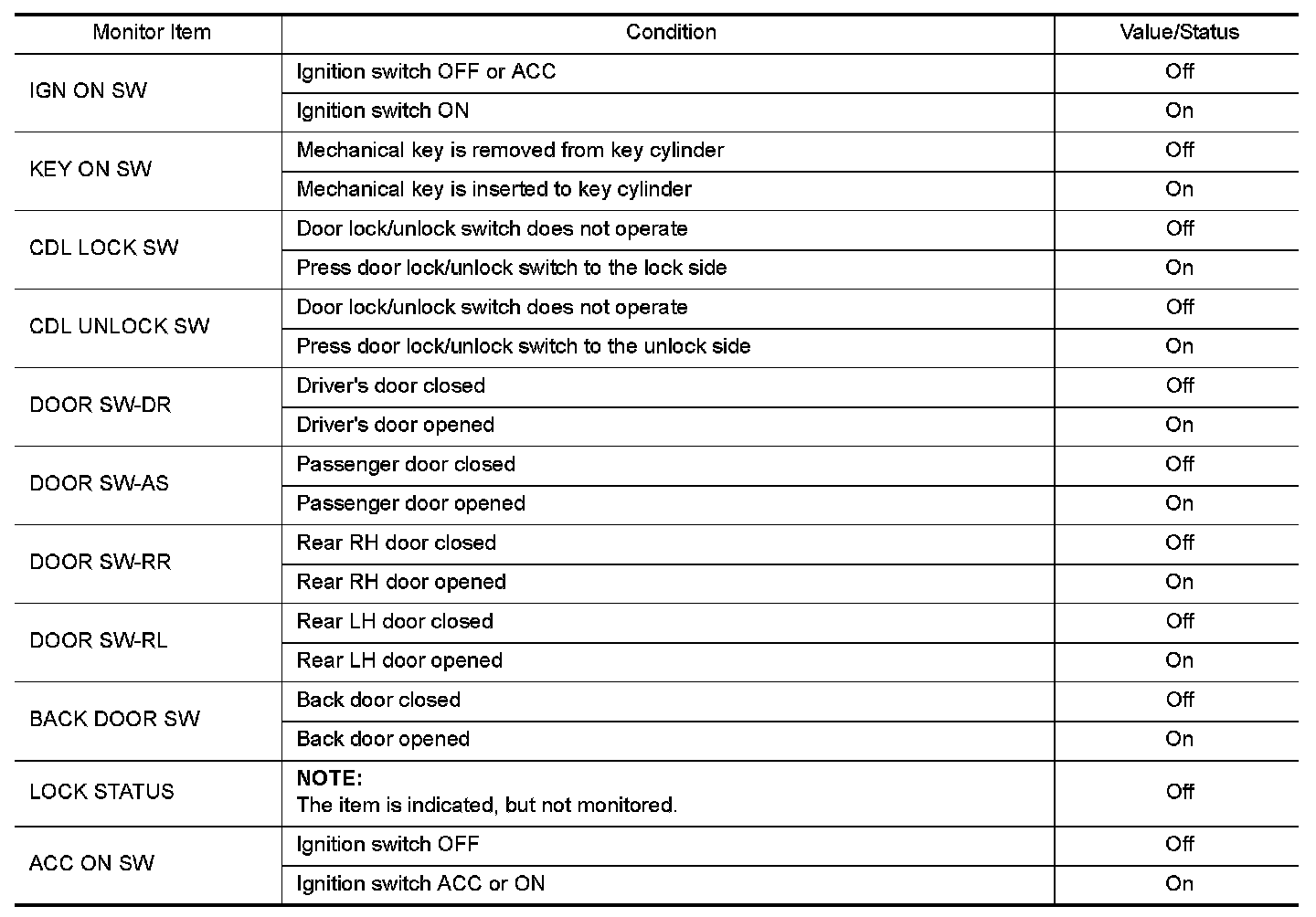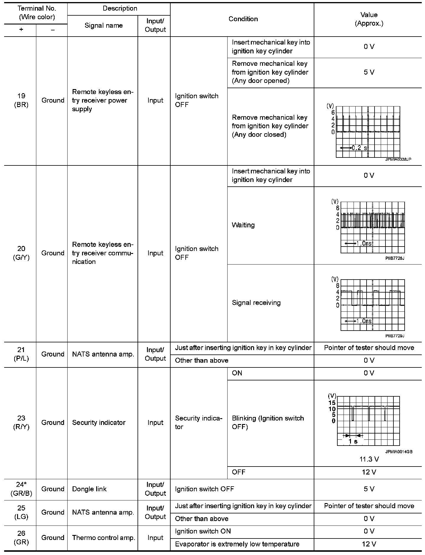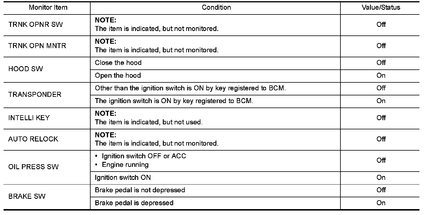 WITHOUT INTELLIGENT KEY : Reference Value
