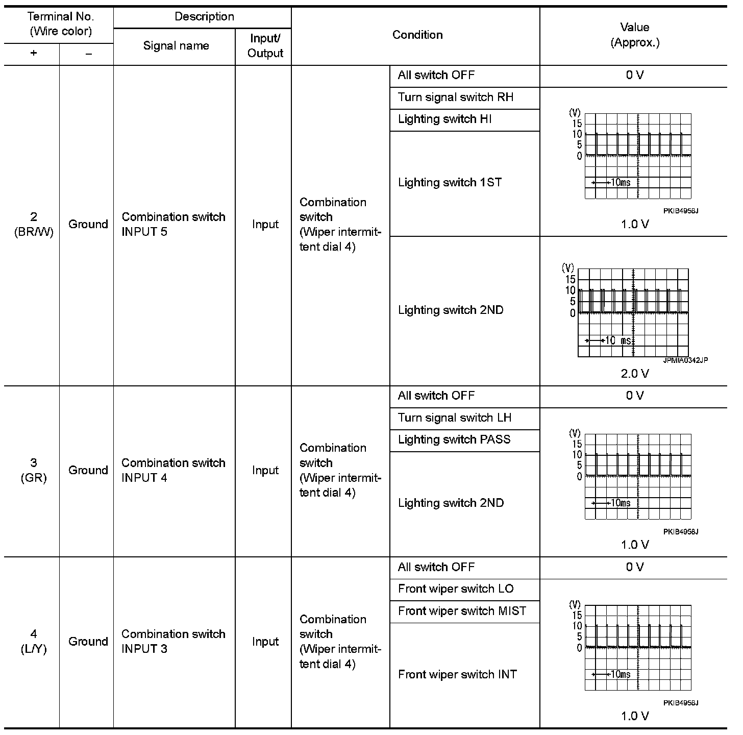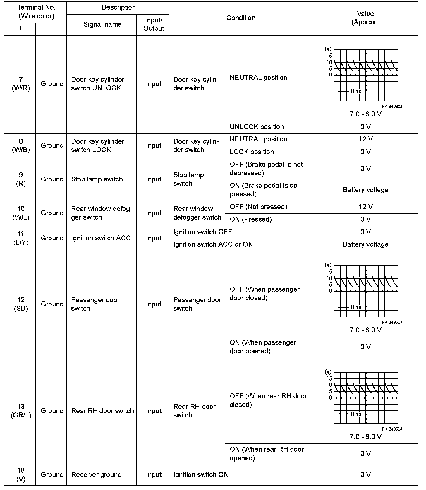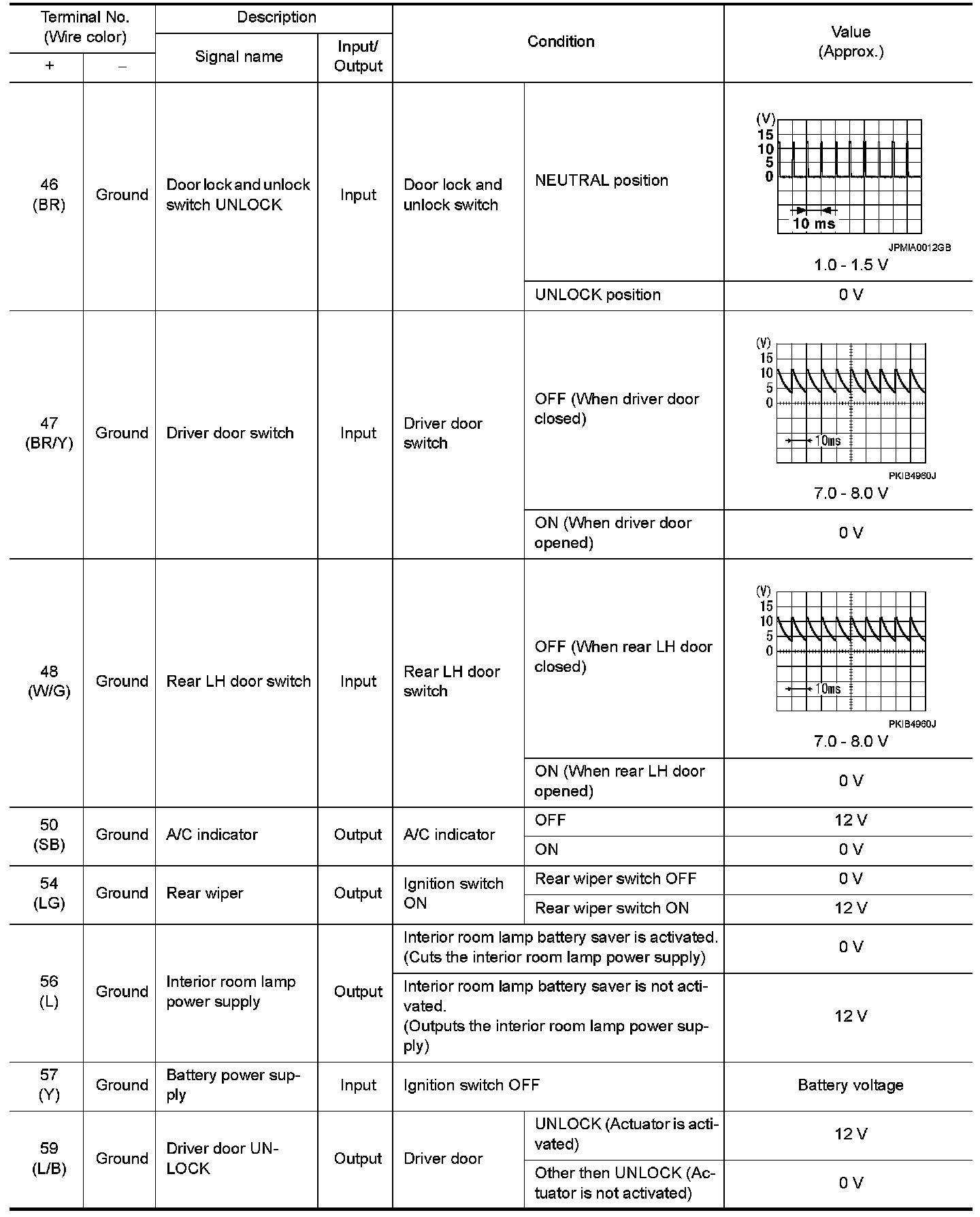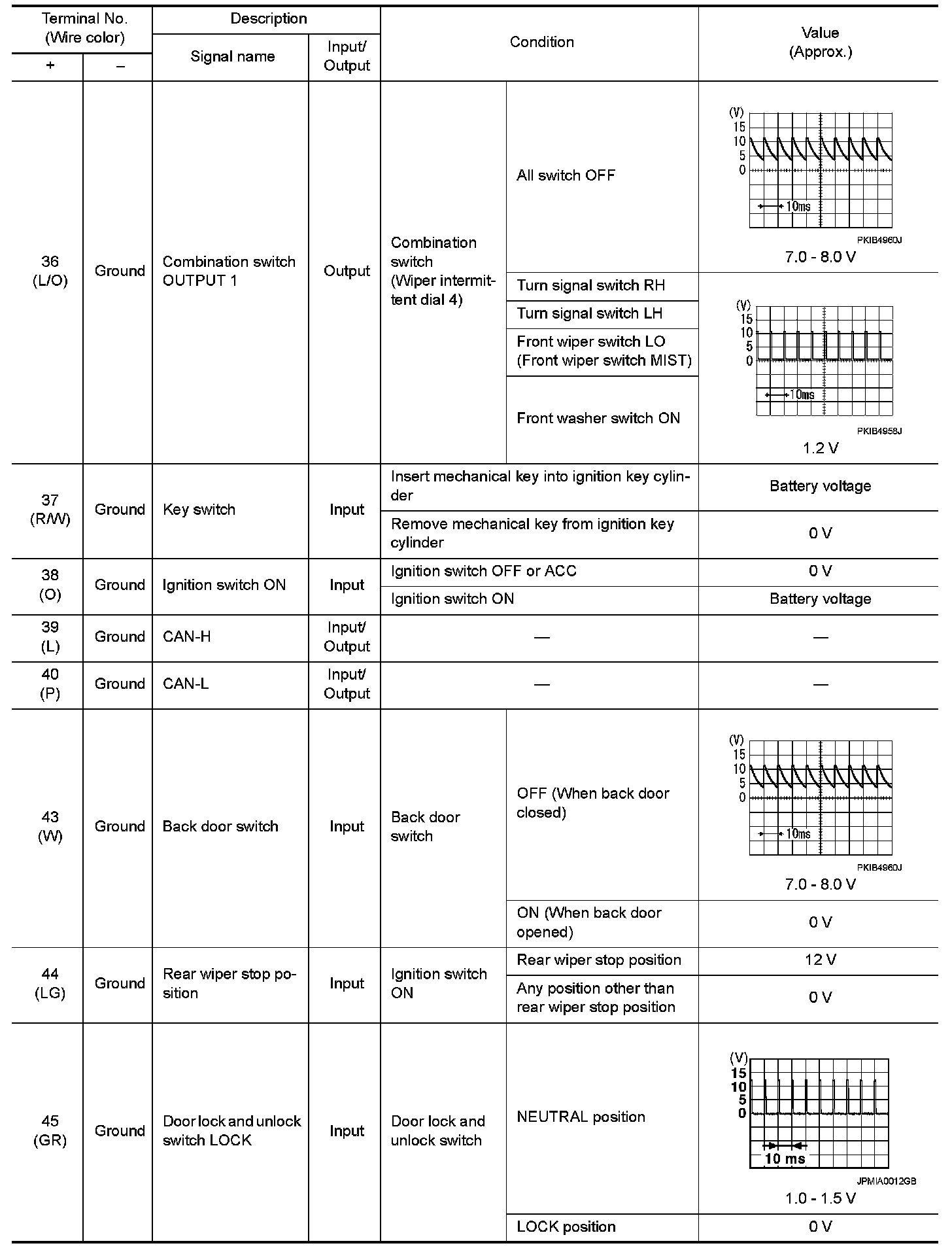 WITHOUT INTELLIGENT KEY : Reference Value
