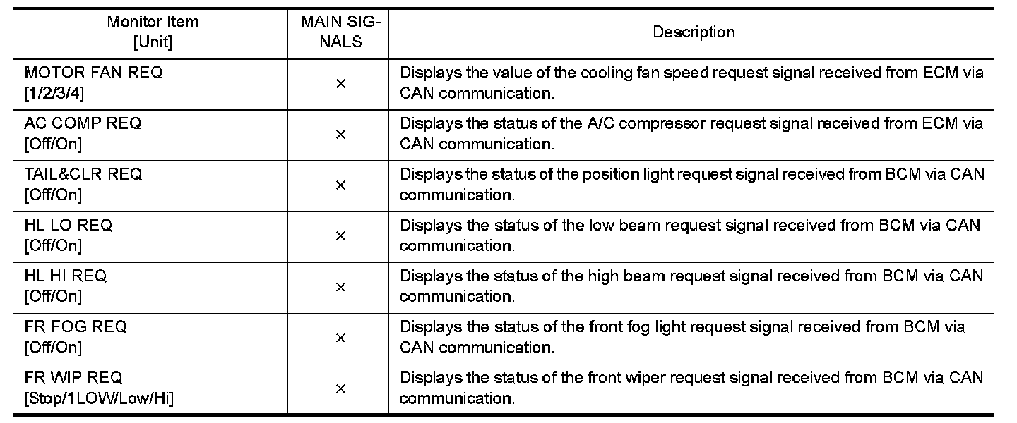 CONSULT performs the following functions via CAN communication with IPDM E/R.