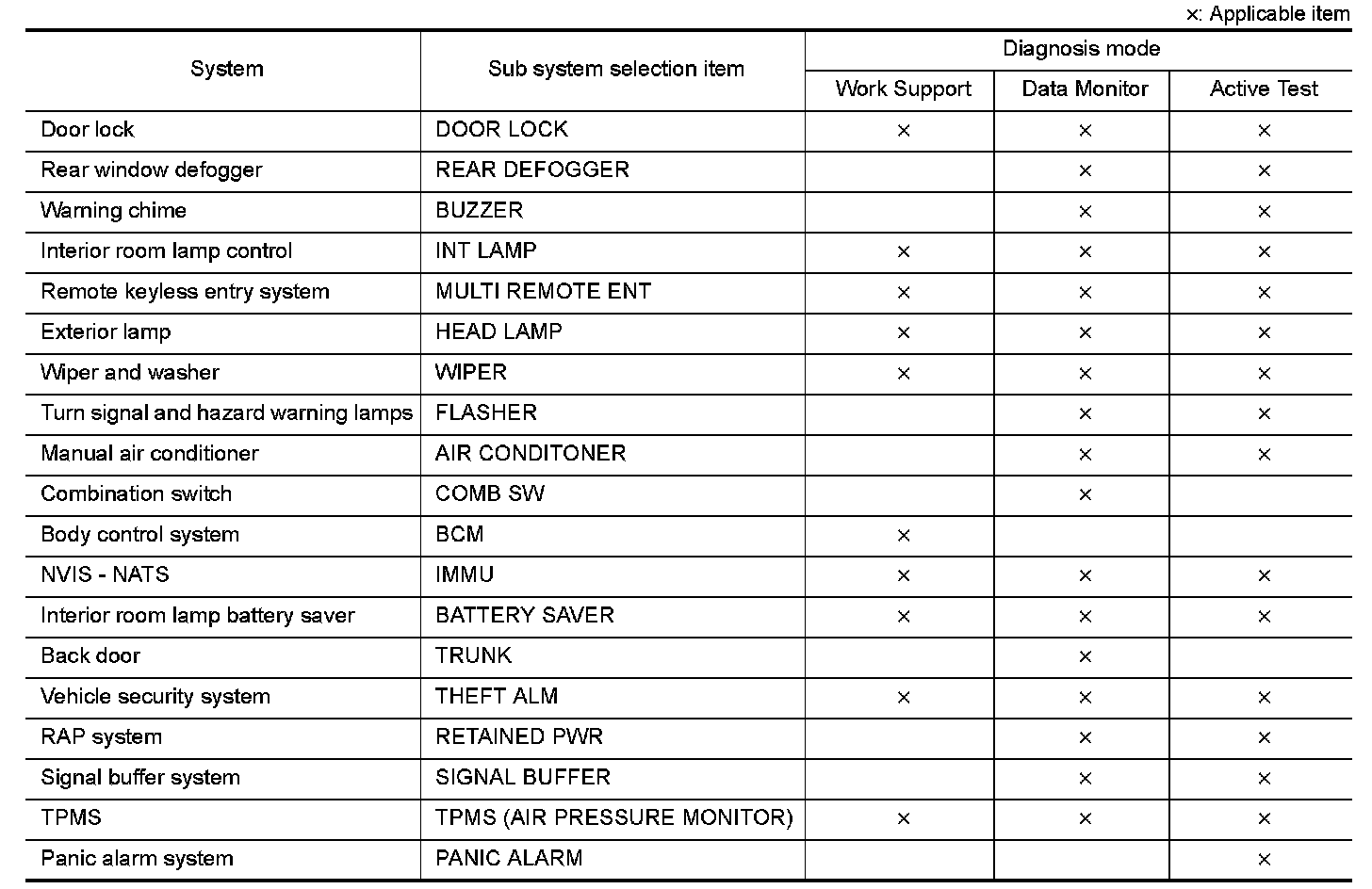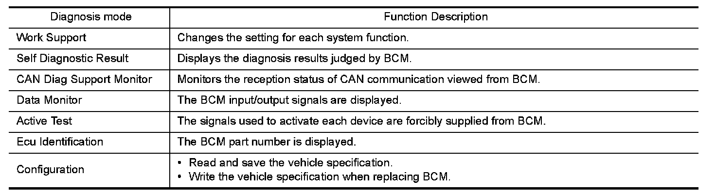 DIAGNOSIS SYSTEM (BCM) (WITHOUT INTELLIGENT KEY SYSTEM)