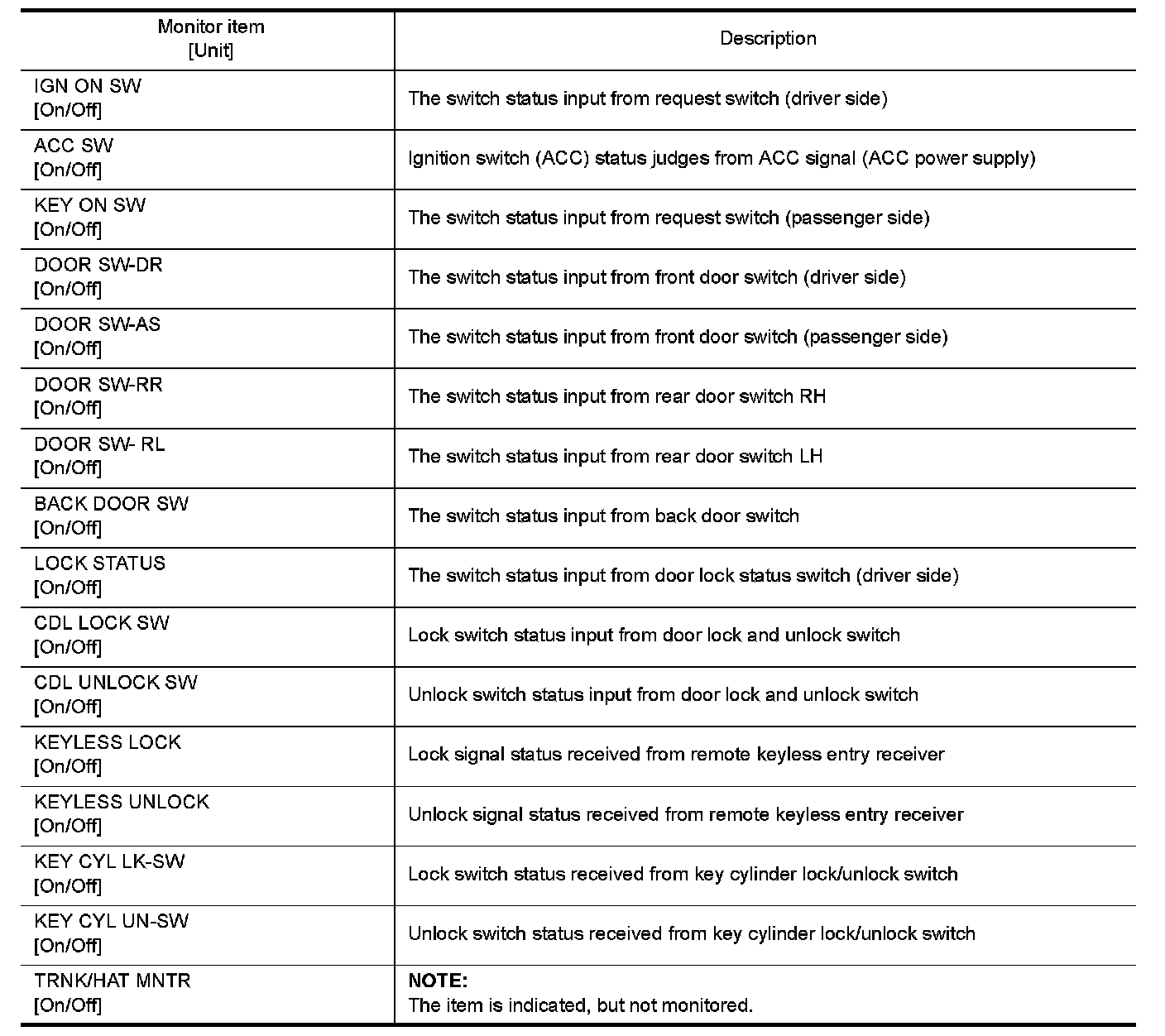 DIAGNOSIS SYSTEM (BCM) (WITHOUT INTELLIGENT KEY SYSTEM)