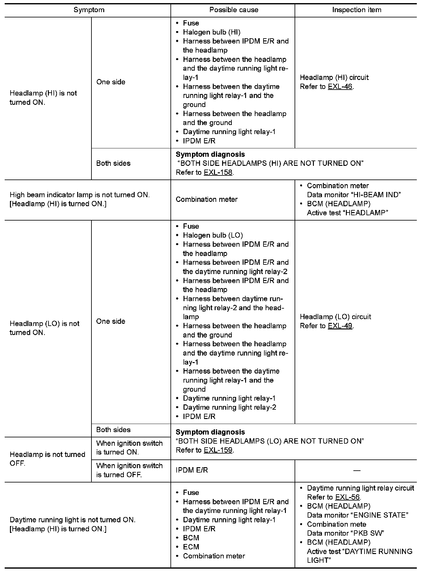 WITH DAYTIME RUNNING LIGHT SYSTEM : Symptom Table