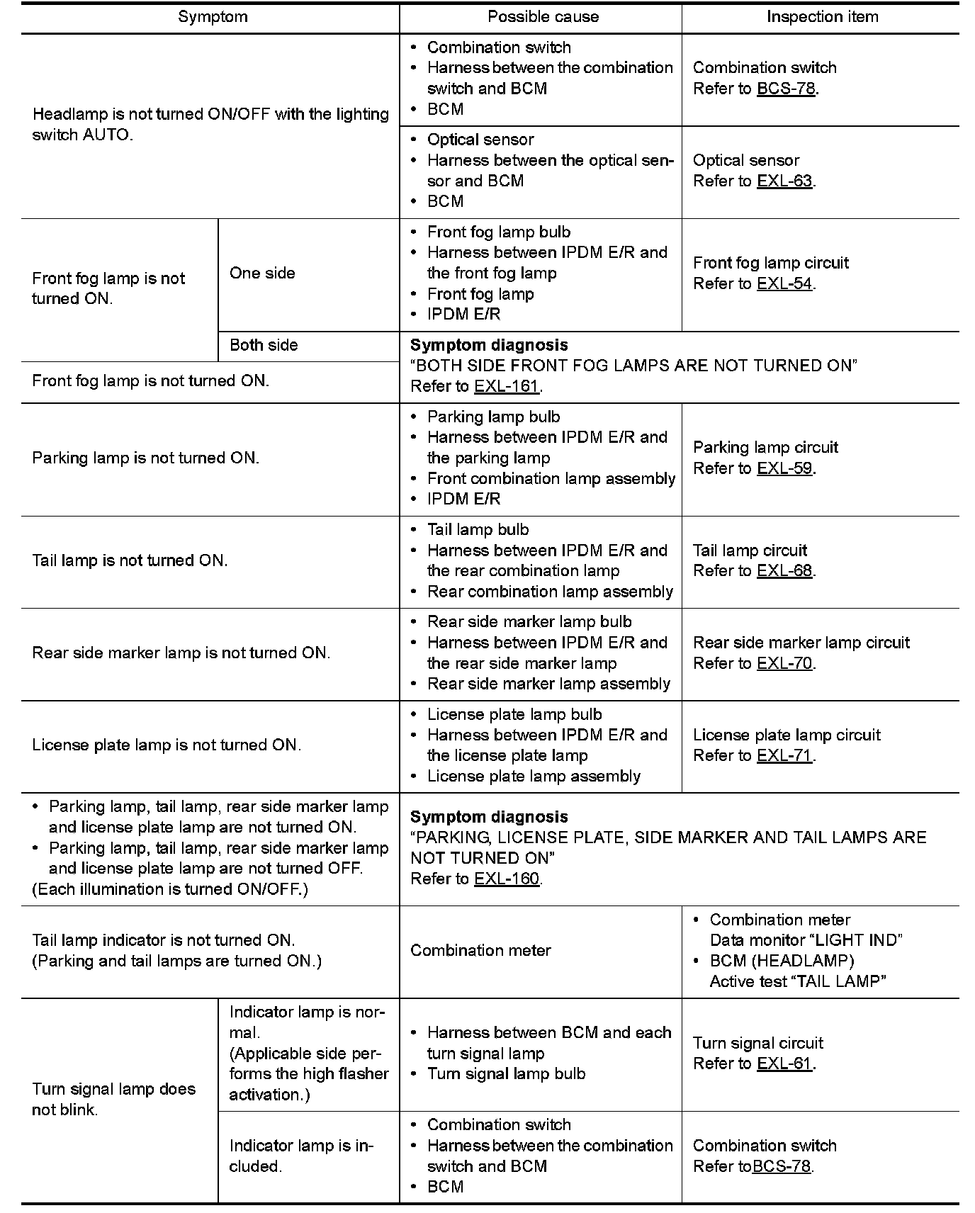EXTERIOR LIGHTING SYSTEM SYMPTOMS