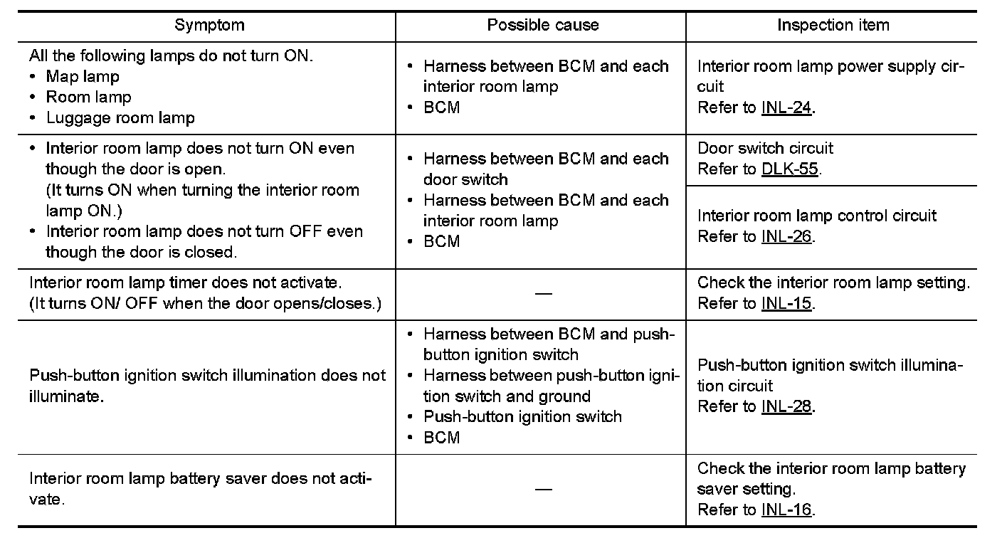 INTERIOR LIGHTING SYSTEM SYMPTOMS