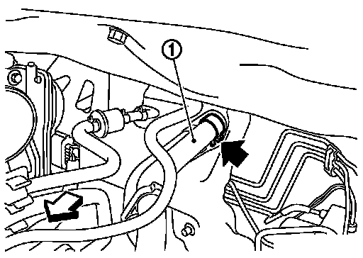 3.Disconnect heater hose (1) at position (black arrow) in the figure.
