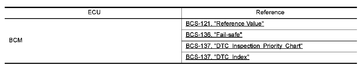 WITHOUT INTELLIGENT KEY : List of ECU Reference