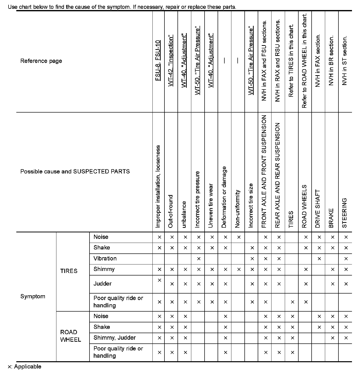 Use chart below to find the cause of the symptom. If necessary, repair or replace these parts.