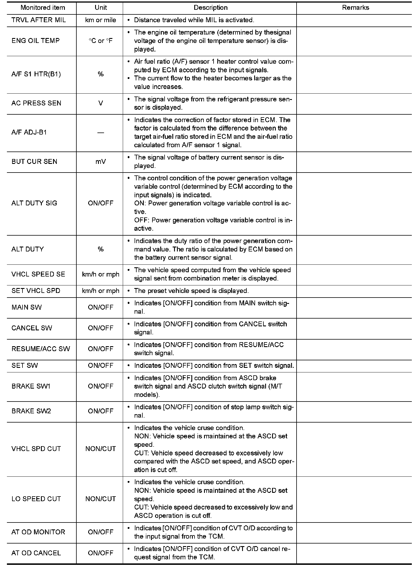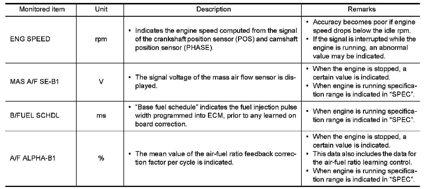 - If "TIME" is neither "0" nor "1t", the DTC occurred in the past and ECM shows the number of times the vehicle has been driven since the last detection of the DTC.
