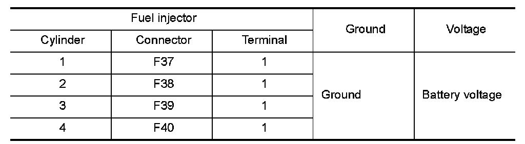 4.Check the voltage between fuel injector harness connector and ground.