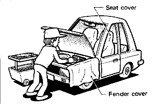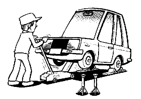 Before jacking up the vehicle apply wheel chocks or other tire blocks to the wheels to prevent the vehicle from moving. After jacking up the vehicle support the vehicle weight with safety stands at the points designated for proper lifting before working on the vehicle.