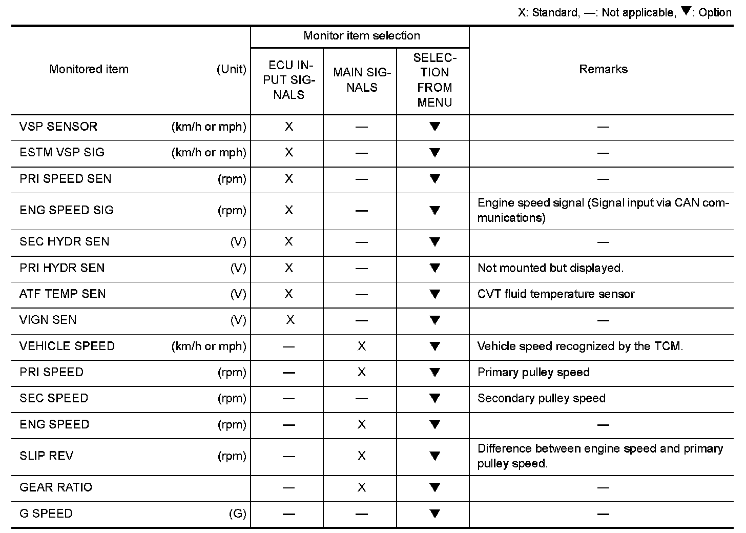 - Check CVT fluid deterioration level when driving under severe conditions.