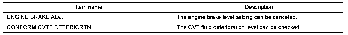 Under normal operating conditions of the transaxle main body and CVT system, if a customer indicates strangeness of involuntary application of the brake on a downhill run, engine brake is allowed to be released in accordance with "Engine Brake Adjustment".