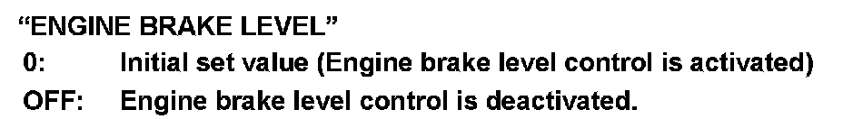 screen. However, do not select mode other than "0" and "OFF". Selecting "+1" or "-1" or "-2" is selected, that may cause irregular driveability.