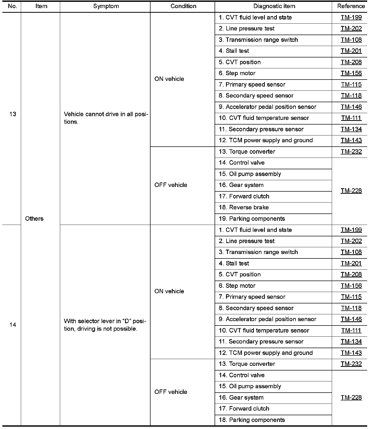 The diagnostics item numbers show the sequence for inspection. Inspect in order from item 1.