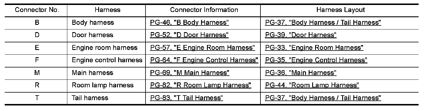 Connector information and harness layout are described in "POWER SUPPLY, GROUND & CIRCUIT ELEMENTS" Section.