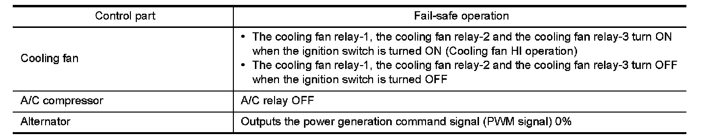 When CAN communication with ECM and BCM is impossible, IPDM E/R performs fail-safe control. After CAN