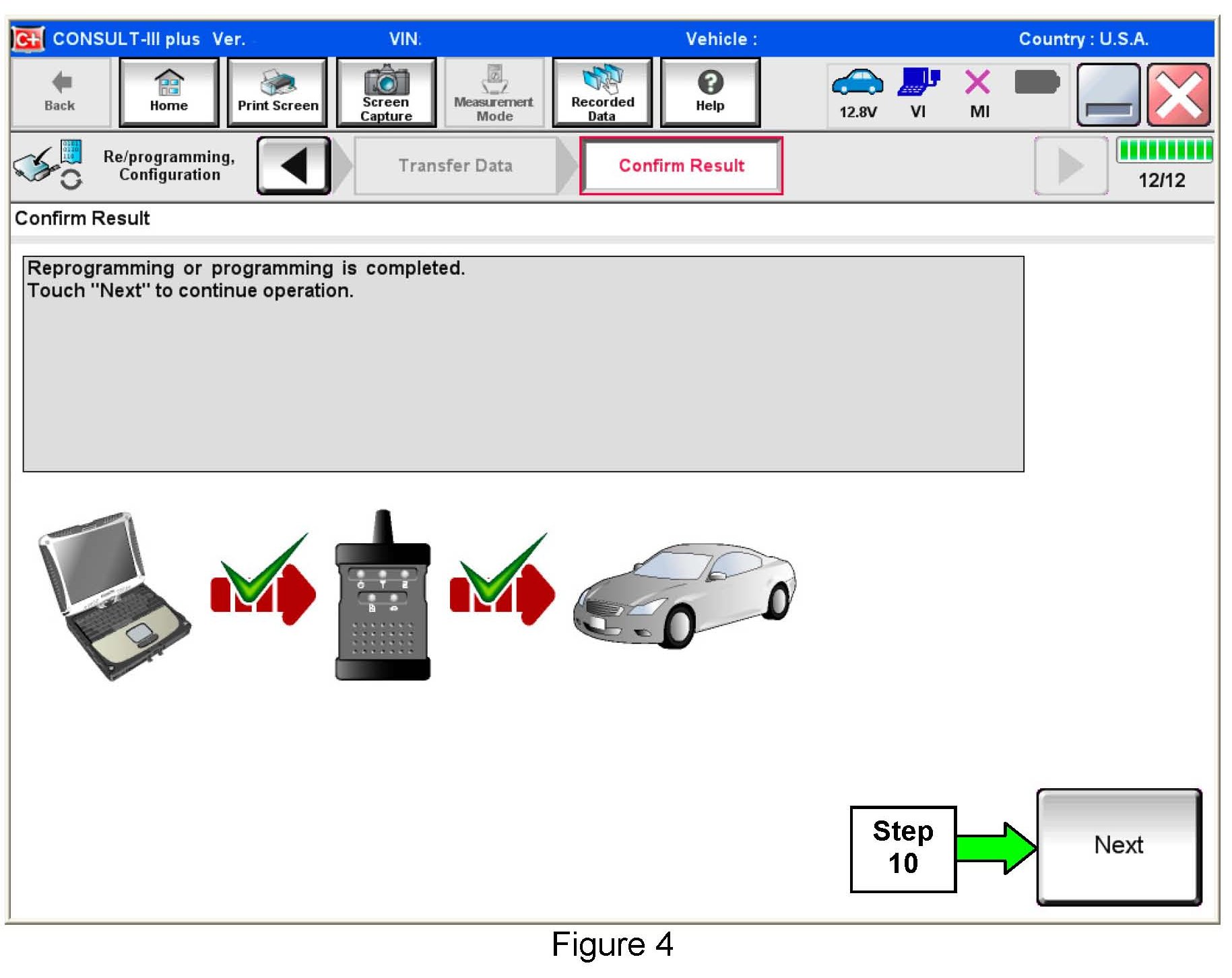If the screen in Figure 4 does not display (reprogramming does not complete), refer to the ECM Recovery information.