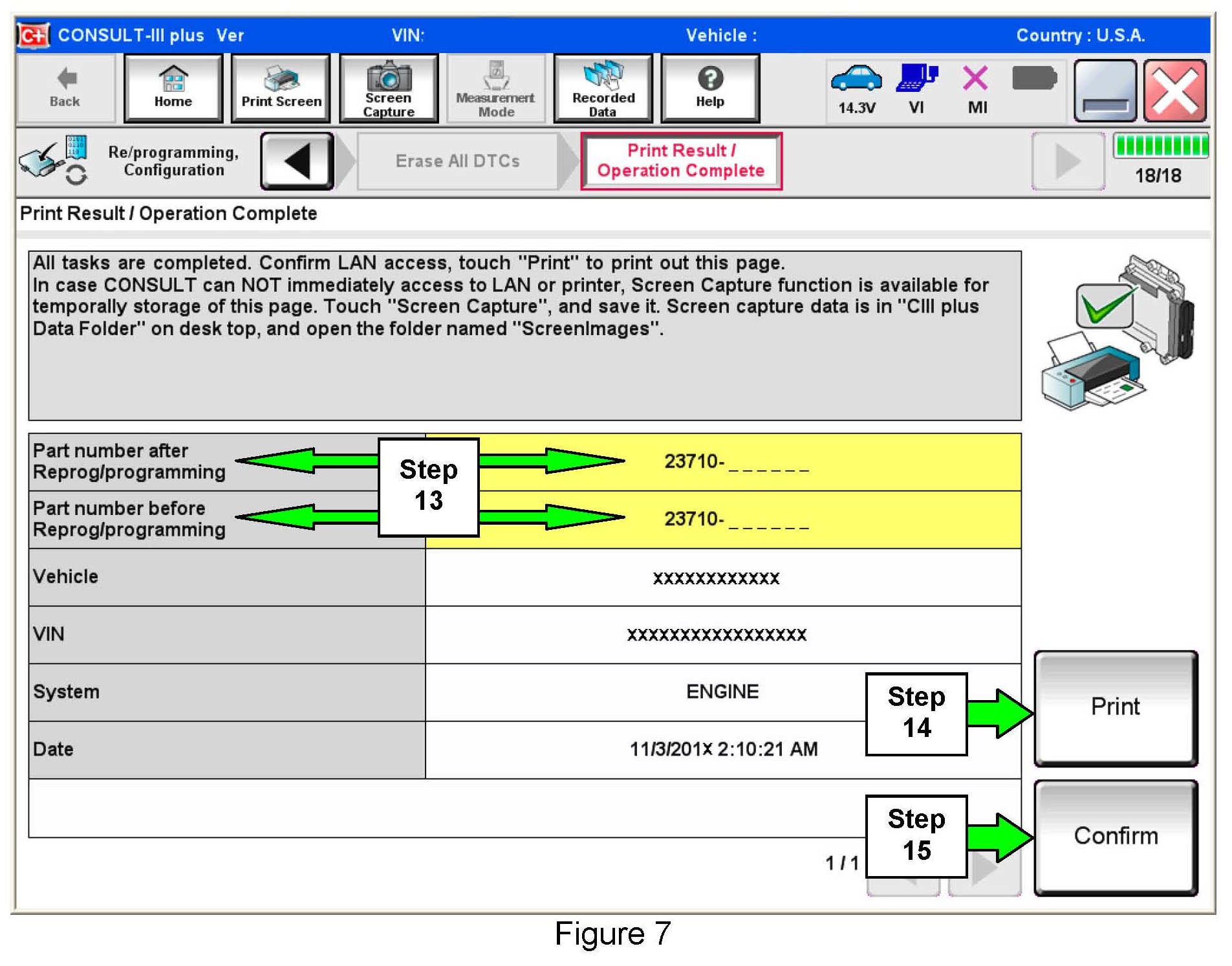 14. Print a copy of this screen (Figure 7) and attach it to the repair order for warranty documentation.