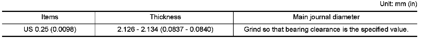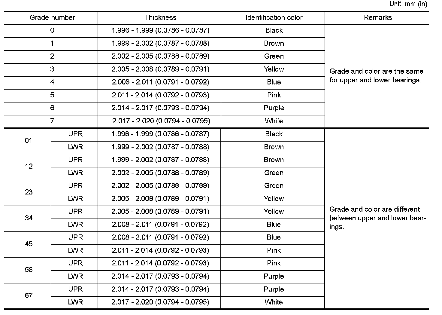 MAIN BEARING GRADE TABLE (ALL JOURNALS)