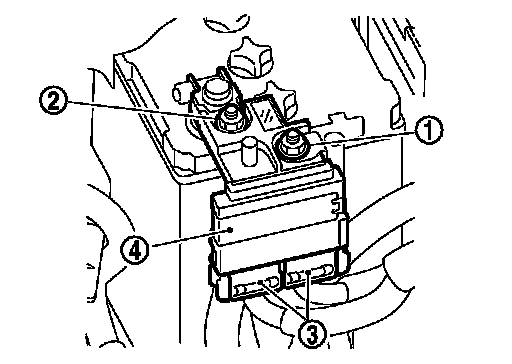 4.Disconnect harness connector (3) and remove battery terminal with fusible link (4).