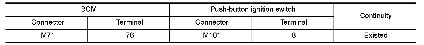 2.Check continuity between BCM harness connector and push-button ignition switch harness connector.