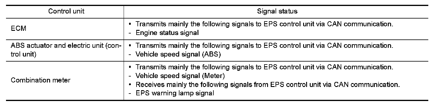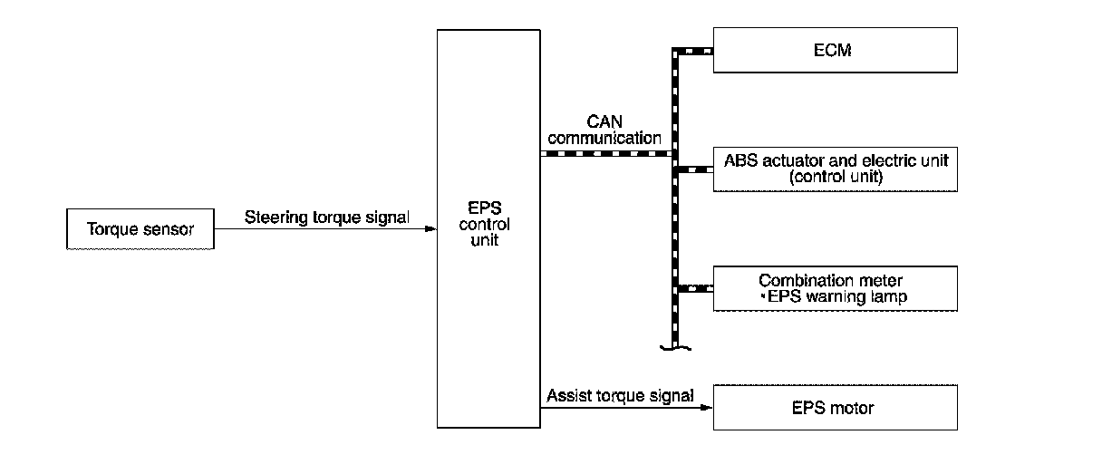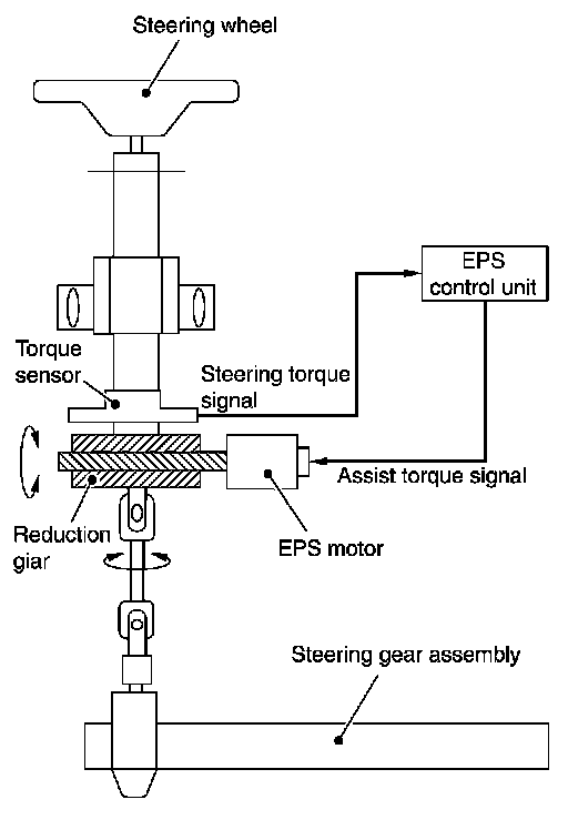 - EPS control unit performs an arithmetical operation on data, such as steering wheel turning force (sensor signal) from the torque sensor, vehicle speed signal, etc. Then it generates an optimum assist torque signal to the EPS motor according to the driving condition.