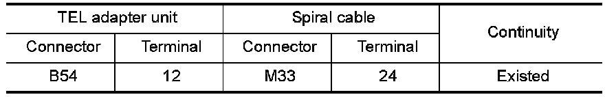 3.Check continuity between TEL adapter unit harness connector and spiral cable harness connector.