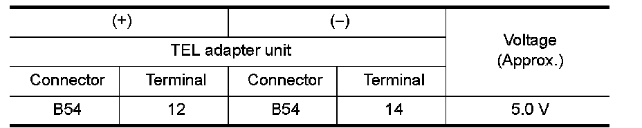 3.Check voltage between TEL adapter unit harness connector.