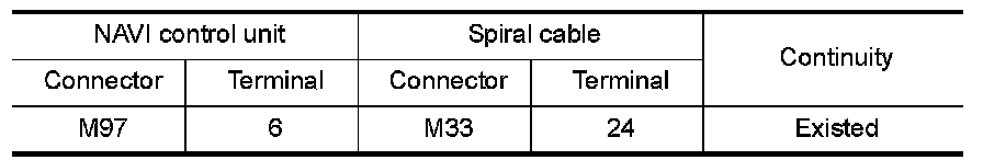 2.Check continuity between NAVI control unit harness connector and spiral cable harness connector.