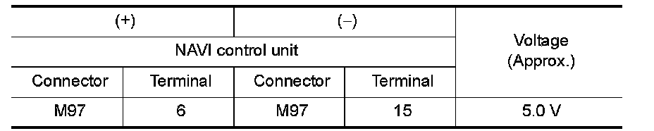 3.Check voltage between NAVI control unit harness connector.