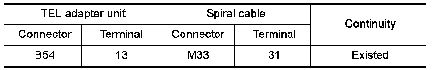 3.Check continuity between TEL adapter unit harness connector and spiral cable harness connector.