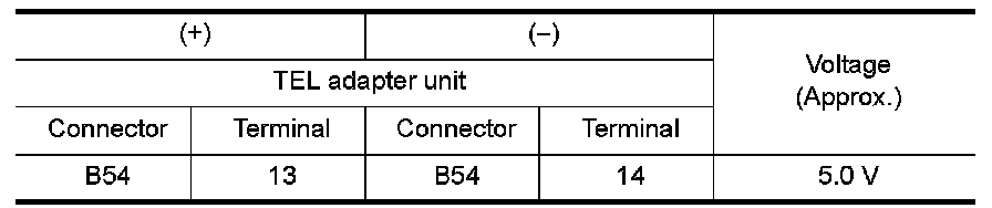 3.Check voltage between TEL adapter unit harness connector.