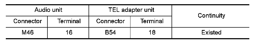 3.Check continuity between audio unit harness connector and TEL adapter unit harness connector.