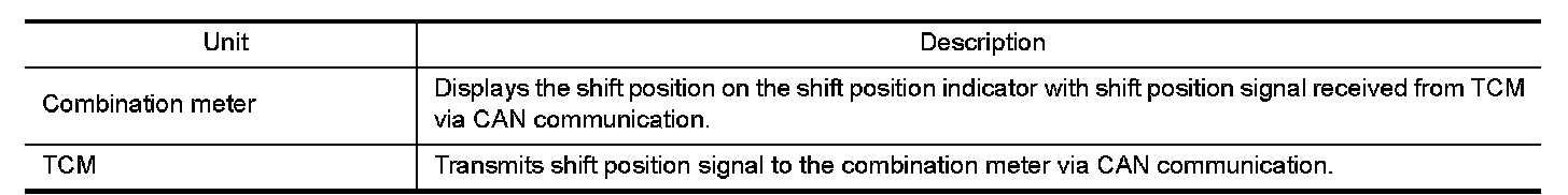 SHIFT POSITION INDICATOR : Component Description
