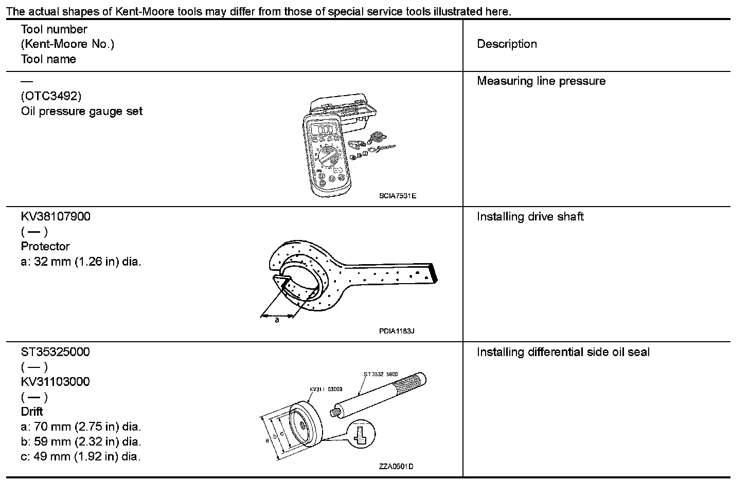 The actual shapes of Kent-Moore tools may differ from those of special service tools illustrated here.