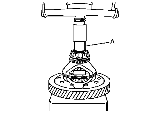 3.Install differential side bearing inner race (clutch housing side), using a drift (A) [Commercial service tool].