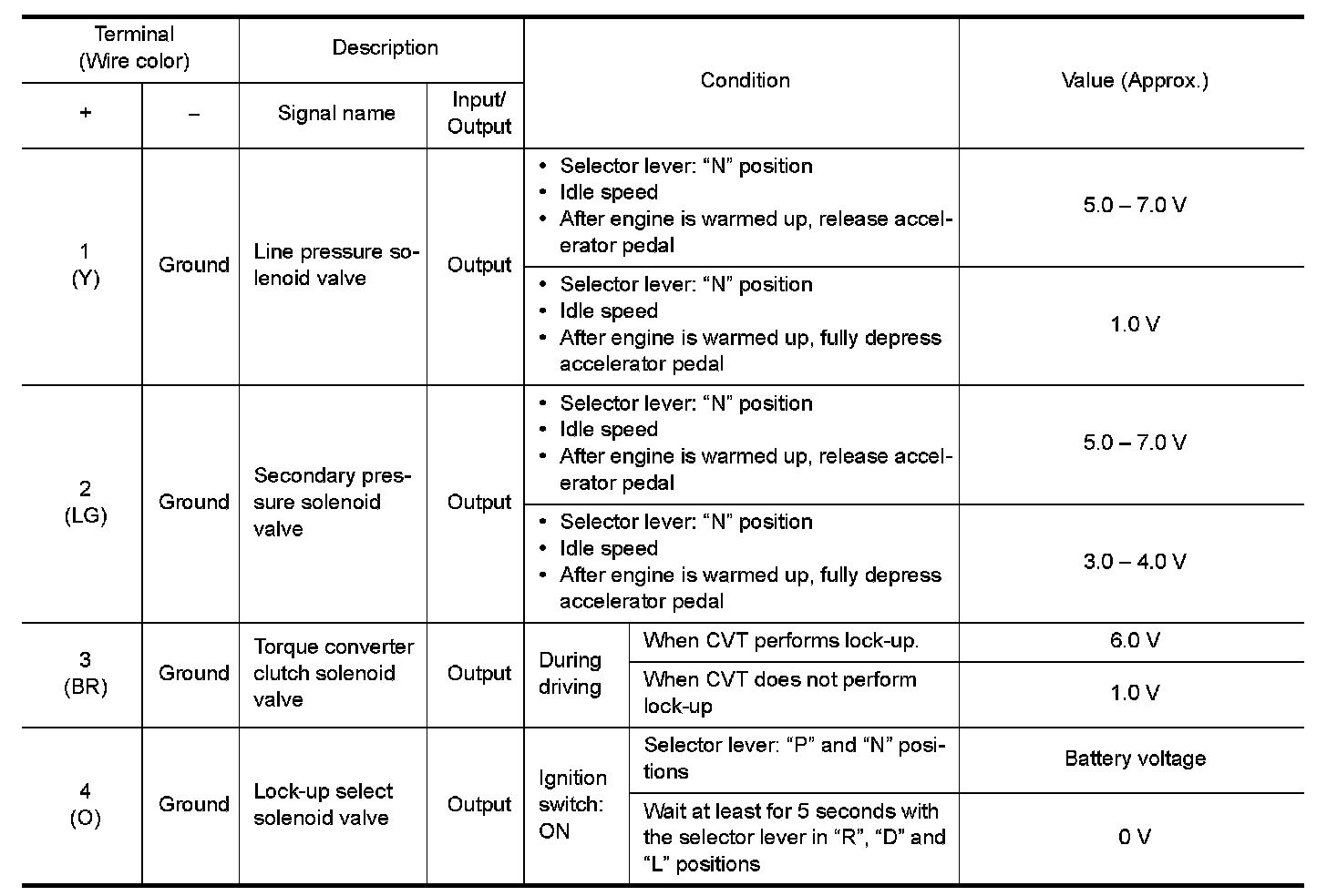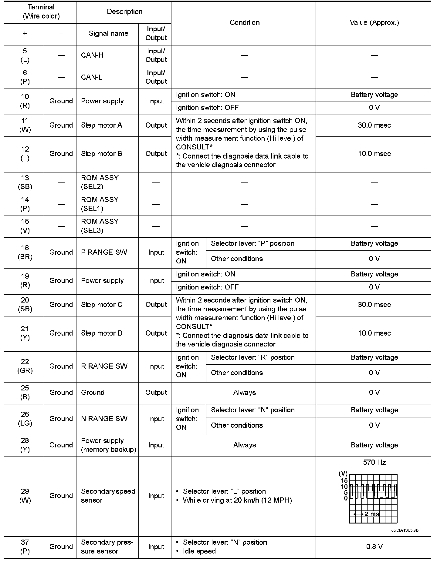 Voltage value is reference value between each terminal and terminal 5 or terminal 42 (ground terminal).