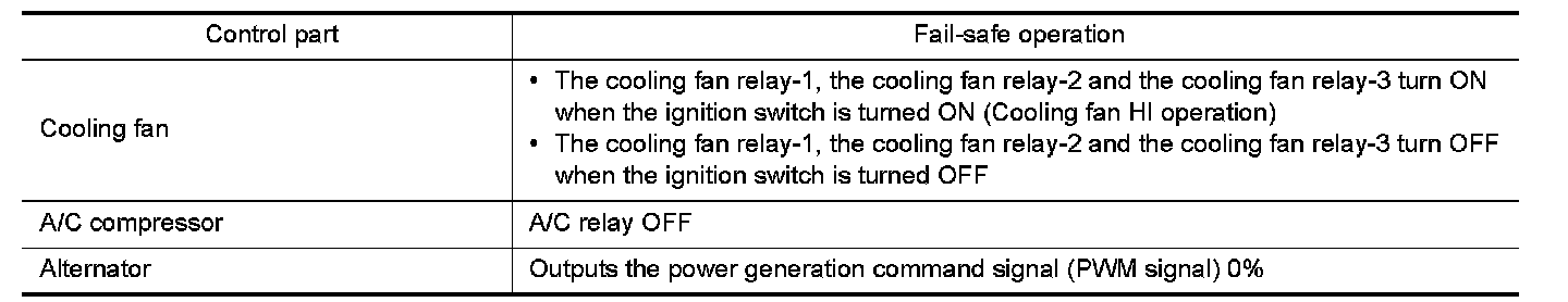 When CAN communication with ECM and BCM is impossible, IPDM E/R performs fail-safe control. After CAN