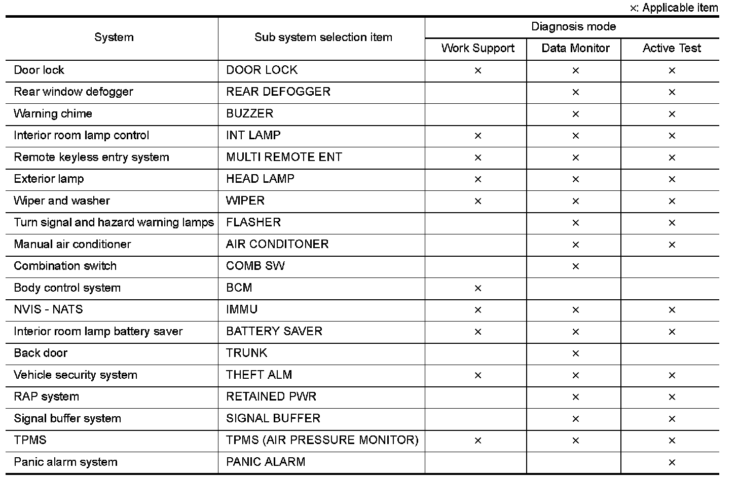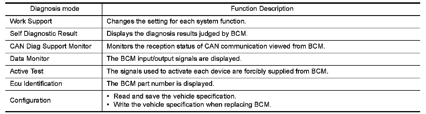 DIAGNOSIS SYSTEM (BCM) (WITHOUT INTELLIGENT KEY SYSTEM)