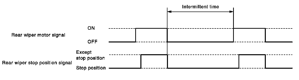 - BCM supplies power to the rear wiper motor after an intermittent from the stop of the rear wiper motor.