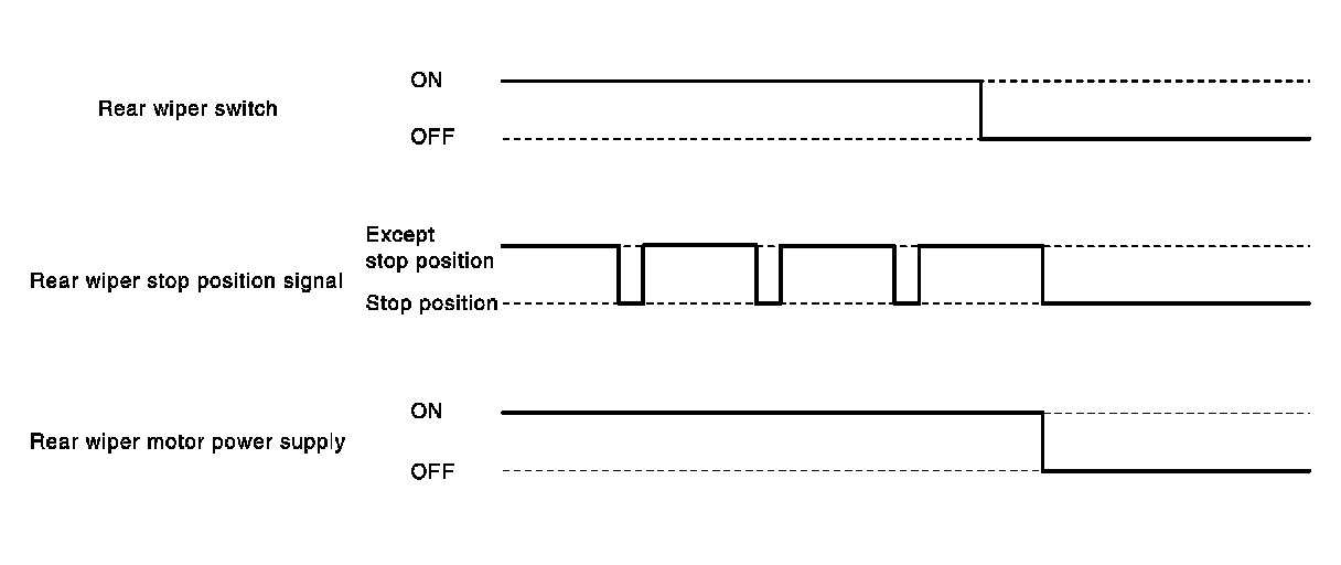 - When the rear wiper motor is at other than the stopping position, BCM continues to supply power to the rear wiper motor until it returns to the stopping position.