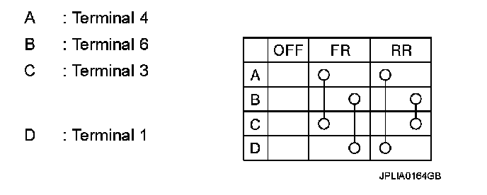 3.Check continuity between the combination switch terminals.