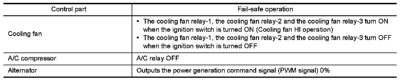 When CAN communication with ECM and BCM is impossible, IPDM E/R performs fail-safe control. After CAN